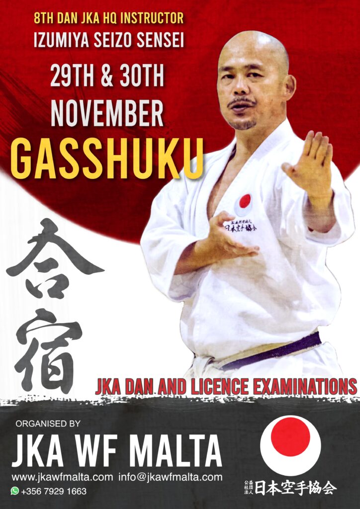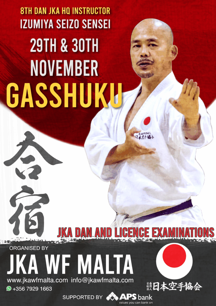JKA WF Malta has the privilege of hosting Izumiya Seizo Sensei, 8th Dan and Senior Managing Director of JKA HQ, on the 29th and 30th of November, 2025.